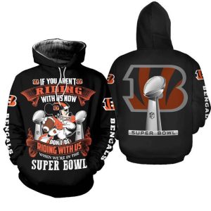 Cincinnati Bengals Mickey Mouse If You Riding With Us Now Don’t Be Riding With Us Gift For Fan 3D T Shirt Sweater Zip Hoodie Bomber Jacket