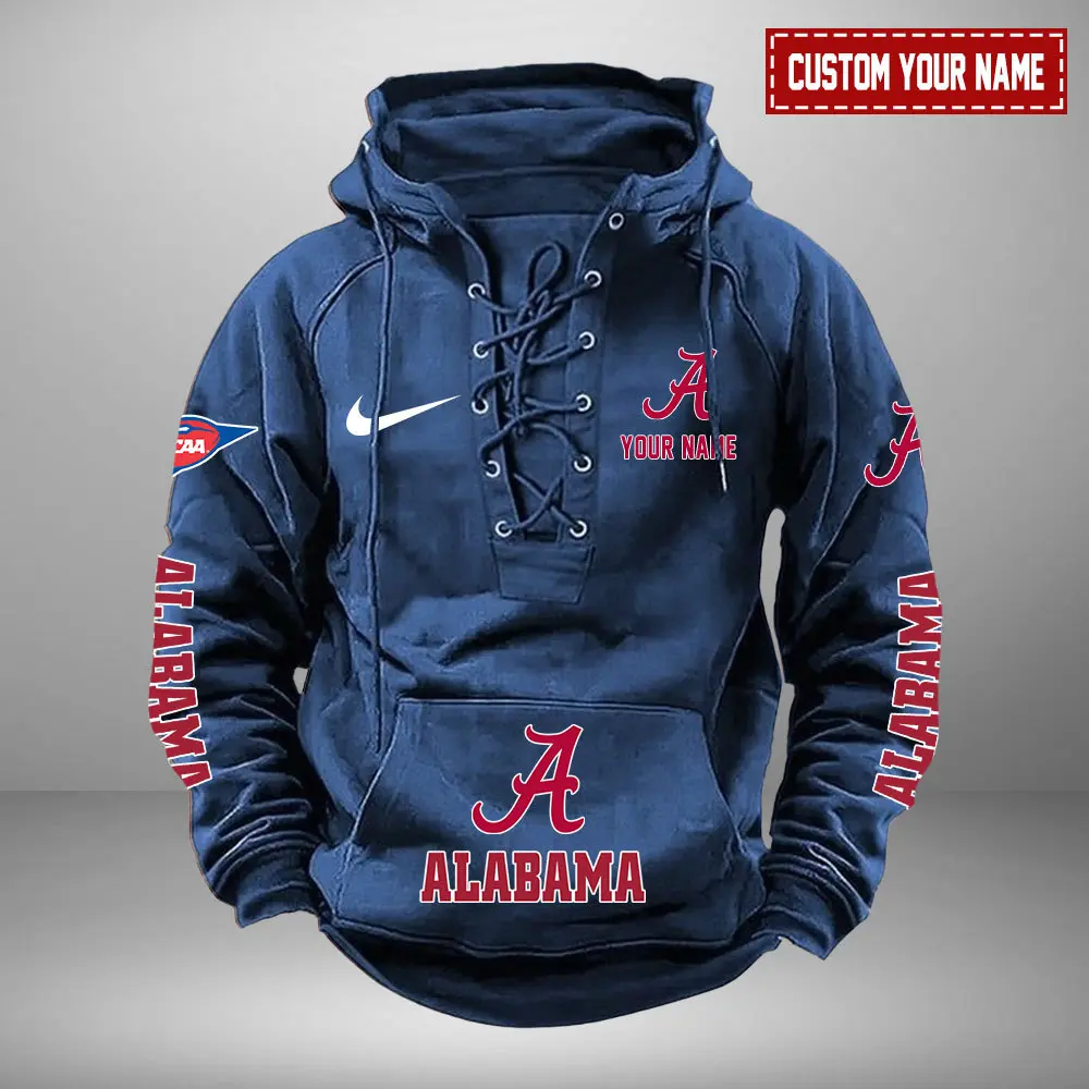 Alabama Crimson Tide NCAA Swoosh Hooded Lace Up Hoodie Vintage Retro Hoodie Custom Name
