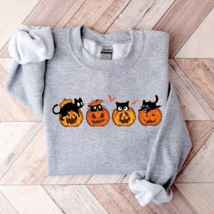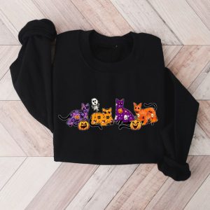 Halloween Sweatshirt Cat Sweatshirt Ghost Shirt Halloween Sweater Cool Halloween Cat Shirt Cat Lover Black Cat
