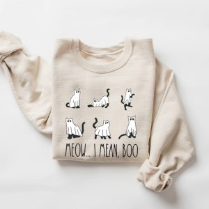 Meow I Mean Boo Sweatshirt Halloween Boo Sweatshirt Cats Funny Halloween Sweatshirt