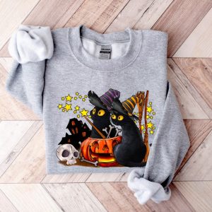 Halloween Sweatshirt Cat Sweatshirt Ghost Shirt Halloween Sweater Cool Halloween Cat Shirt Cat Lover Black Cat