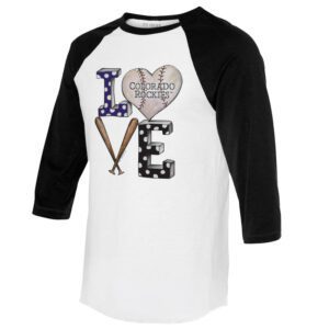 Colorado Rockies Baseball LOVE 3/4 Black Sleeve Raglan Shirt