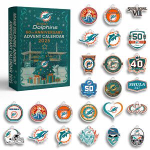 Miami Dolphins Advent Calendar Acrylic Hanging Decor Box 2025 – Christmas Gift