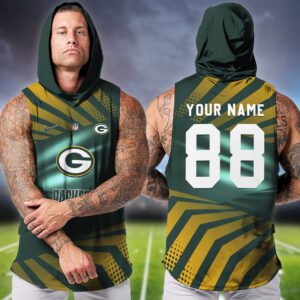 Green Bay Packers NFL Men Workout Hoodie Tank Tops Custom Name WHT1075