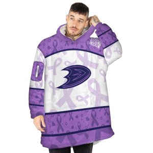 Custom NHL Anaheim Ducks Lavender Hockey Fights Cancer Oodie Blanket Hoodie Wearable Blanket