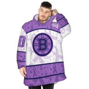 Custom NHL Boston Bruins Lavender Hockey Fights Cancer Oodie Blanket Hoodie Wearable Blanket