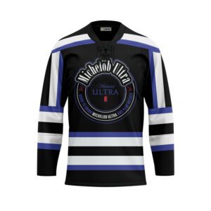 Personalized Black Born To Drink Michelob ULTRA and Play Lace Hockey Jersey