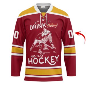 Personalized Born To Drink Budweiser and Play Lace Hockey Jersey