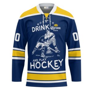 Personalized Born To Drink Corona Extra and Play Lace Hockey Jersey