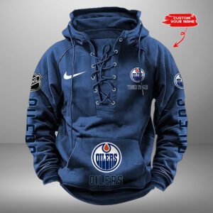 Edmonton Oilers NHL Swoosh Hooded Lace Up Retro Vintage Hoodie Custom Name
