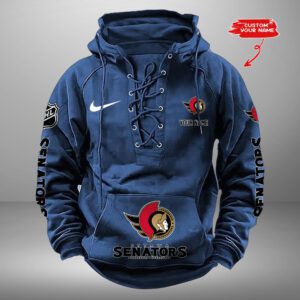 Ottawa Senators NHL Swoosh Hooded Lace Up Retro Vintage Hoodie Custom Name