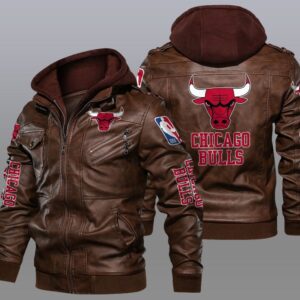 Chicago Bulls Black Brown Leather Jacket LIZ112