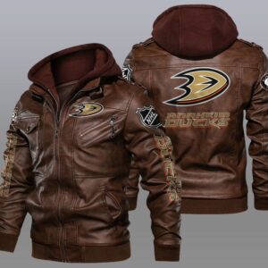 Anaheim Ducks Black Brown Leather Jacket LIZ122