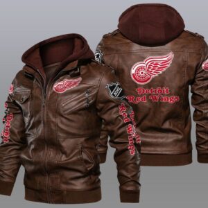 Detroit Red Wings Black Brown Leather Jacket LIZ120