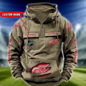 Detroit Red Wings NHL Hockey Vintage Quarter Zip Hoodie Retro Hoodie Custom Name WRH1012
