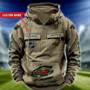 Minnesota Wild NHL Hockey Vintage Quarter Zip Hoodie Retro Hoodie Custom Name WRH1014