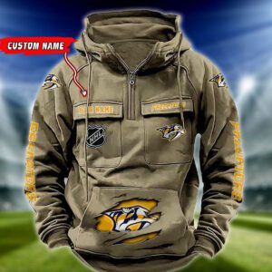 Nashville Predators NHL Hockey Vintage Quarter Zip Hoodie Retro Hoodie Custom Name WRH1015