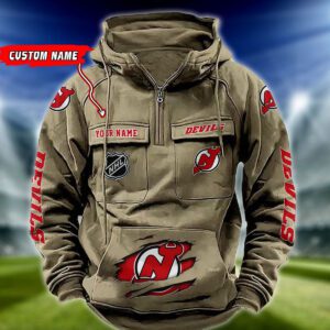 New Jersey Devils NHL Hockey Vintage Quarter Zip Hoodie Retro Hoodie Custom Name WRH1016