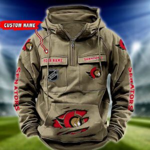 Ottawa Senators NHL Hockey Vintage Quarter Zip Hoodie Retro Hoodie Custom Name WRH1019