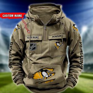 Pittsburgh Penguins NHL Hockey Vintage Quarter Zip Hoodie Retro Hoodie Custom Name WRH1023