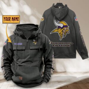 Minnesota Vikings NFL Personalized Multi Pocket Quarter Zip Vintage Hoodie WVH1052
