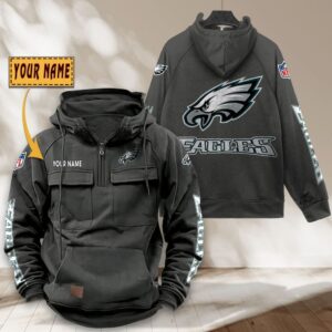 Philadelphia Eagles NFL Personalized Multi Pocket Quarter Zip Vintage Hoodie WVH1060