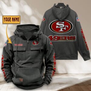 San Francisco 49ers NFL Personalized Multi Pocket Quarter Zip Vintage Hoodie WVH1061