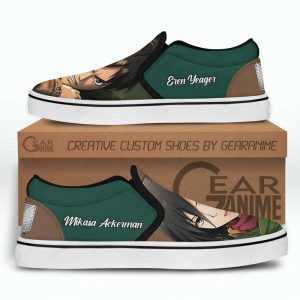 Eren and Mikasa Slip On Shoes Custom Anime Attack On Titan Shoes
