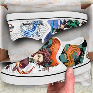 Tanjiro Fire Water Slip On Shoes Custom Demon Slayer Anime Shoes