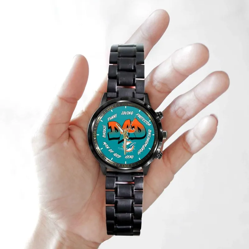 Miami Dolphins Limited Edition Black Stainless Steel Watch For Father’s Day