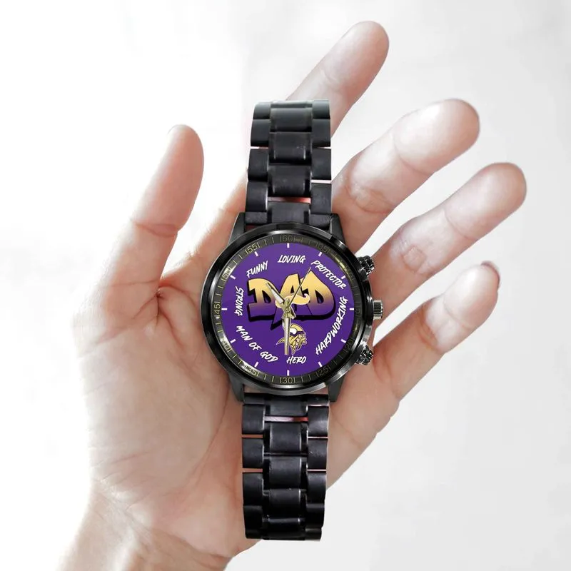 Minnesota Vikings Limited Edition Black Stainless Steel Watch For Father’s Day