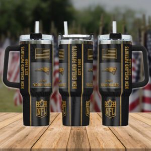 New England Patriots NFL Personalized 40oz Stanley Tumbler Black Gold US Flag Tumbler