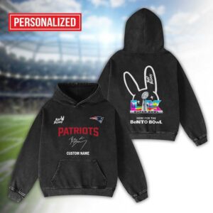 New England Patriots Bad Bunny Super Bowl LX 2026 2D Washed Hoodie