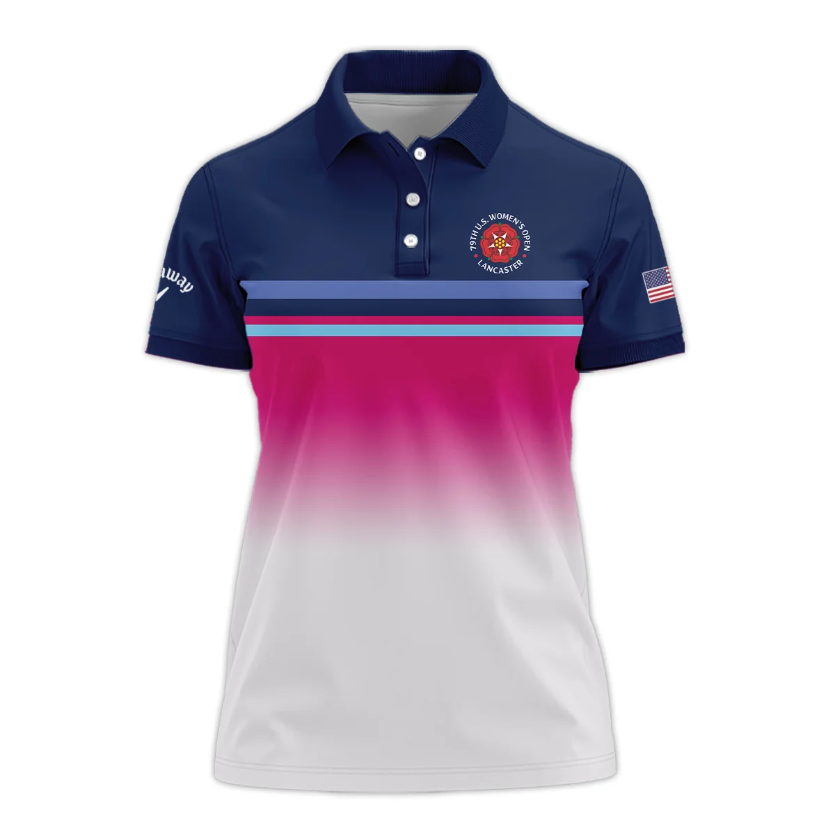 Dark Blue Pink White Line Callaway 79th U.S. Women’s Open Lancaster Short Polo Shirt
