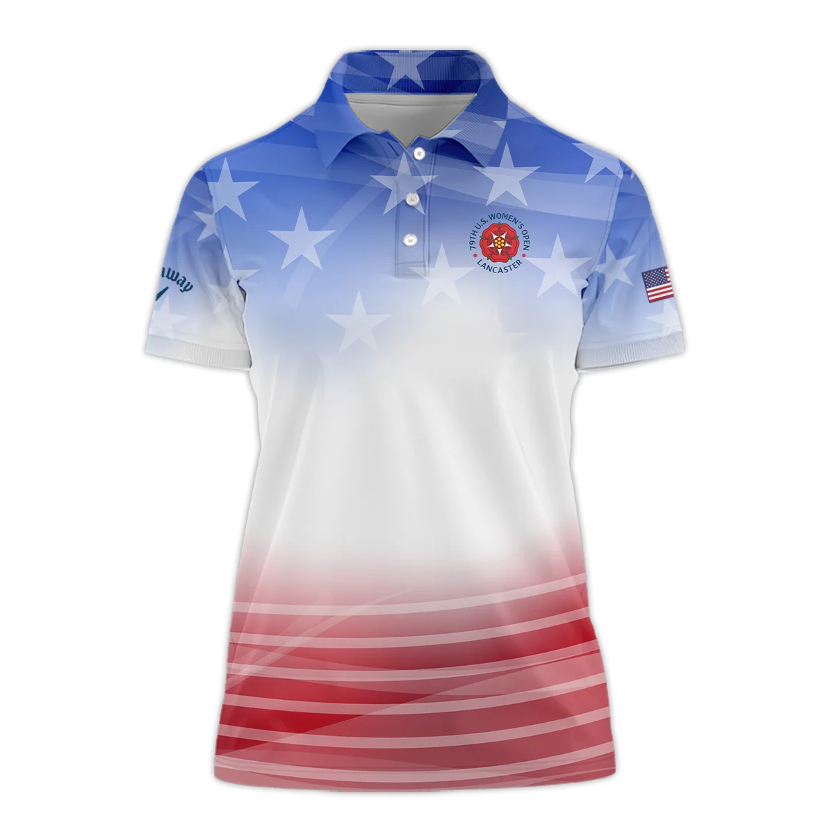 Star White Blue Red Background Callaway 79th U.S. Women’s Open Lancaster Short Polo Shirt