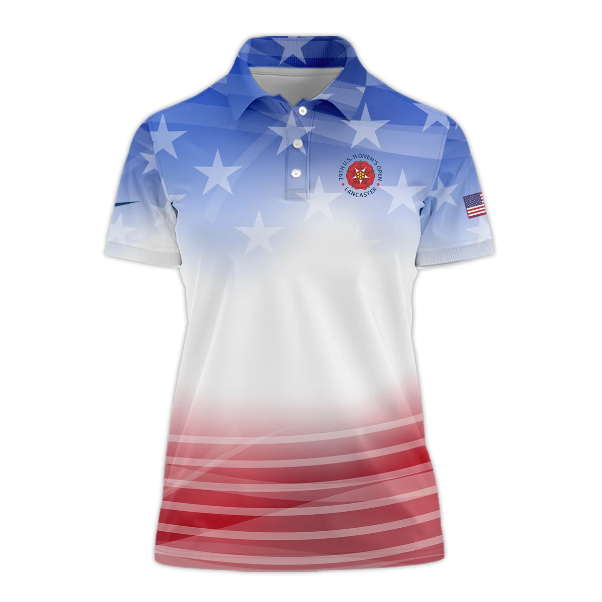 Star White Blue Red Background Nike 79th U.S. Women’s Open Lancaster Short Polo Shirt