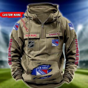 New York Rangers NHL Hockey Vintage Quarter Zip Hoodie Retro Hoodie Custom Name WRH1018