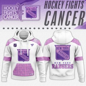 New York Rangers x Hockey Fights Cancer White Unisex Hoodie Cap Joggers Set 2024/25 HCJ1346