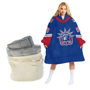 Personalized NHL Reverse Retro jerseys New York Rangers Oodie Blanket Hoodie Wearable Blanket