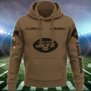 New York Jets NFL Brown Salute To Service 2023 Veteran 3D Hoodie Custom Your Name HSL1153