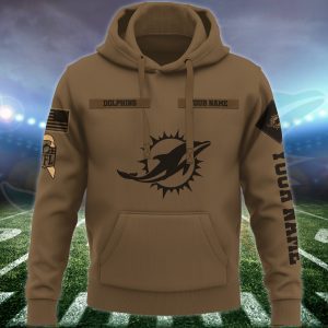 Miami Dolphins NFL Brown Salute To Service 2023 Veteran 3D Hoodie Custom Your Name HSL1148