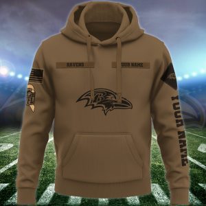 Baltimore Ravens NFL Brown Salute To Service 2023 Veteran 3D Hoodie Custom Your Name HSL1131