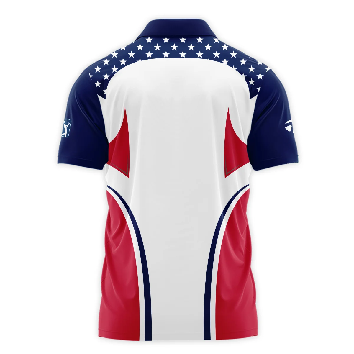 124th U.S. Open Pinehurst Taylor Made Stars White Dark Blue Red Line Zipper Polo Shirt ZPL1064