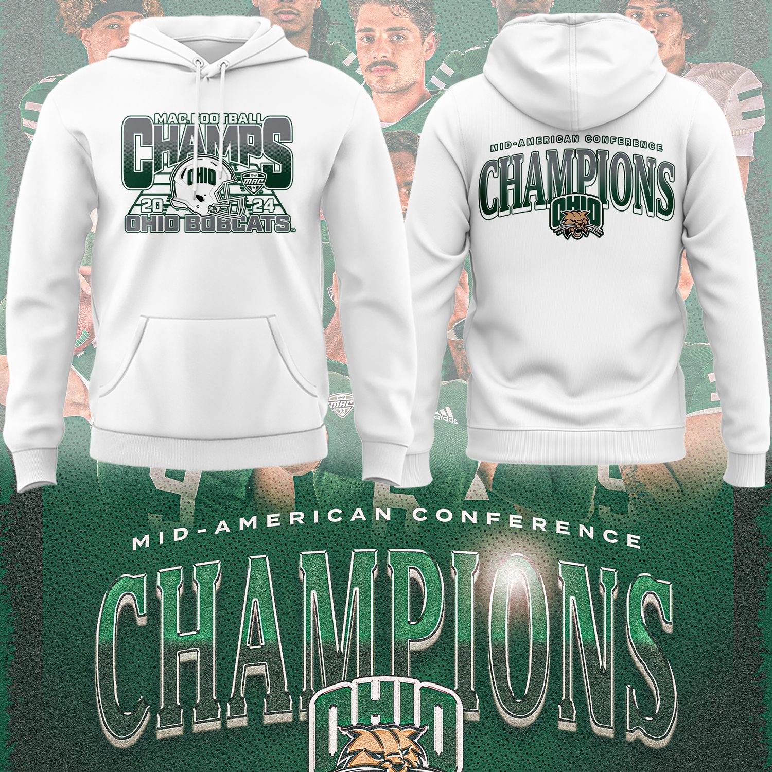 2024 Mac Champions Ohio Bobcats Football White Hoodie BHD6139