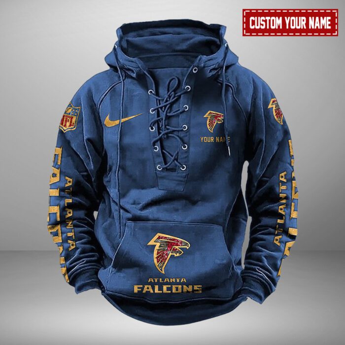 Atlanta Falcons NFL Personalized Swoosh Hooded Lace Up Hoodie Vintage Retro Hoodie