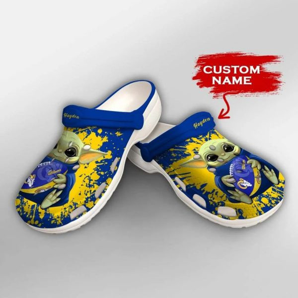 Baby Yoda Los Angeles Rams Custom Name Crocs Crocband Clog Comfortable Water Shoes BCL1768