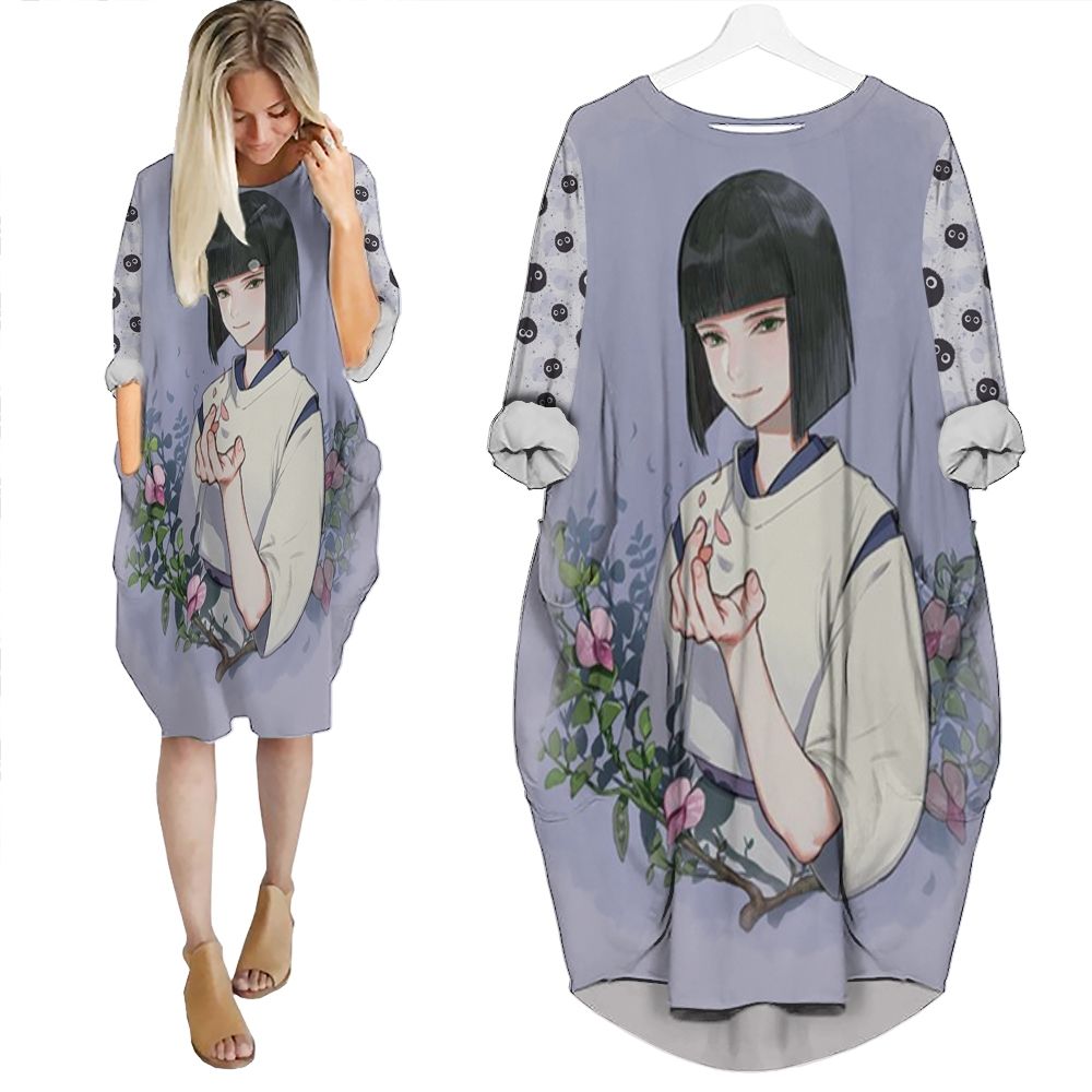 Beautiful Nigihayami Kohaku Nushi Flower Spirited Away Ghibli Studio Anime Fan 1 Batwing Pocket Dress PD3147