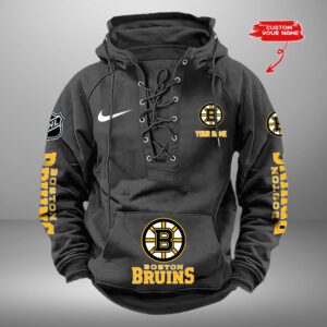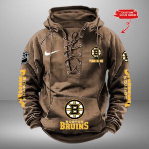Boston Bruins NHL Swoosh Hooded Lace Up Retro Vintage Hoodie Custom Name