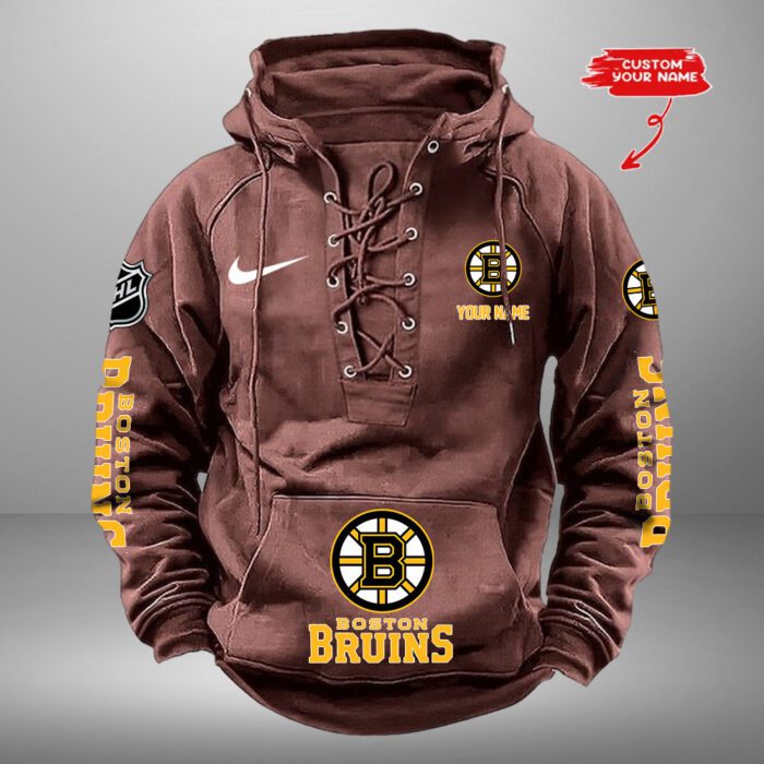 Boston Bruins NHL Swoosh Hooded Lace Up Retro Vintage Hoodie Custom Name
