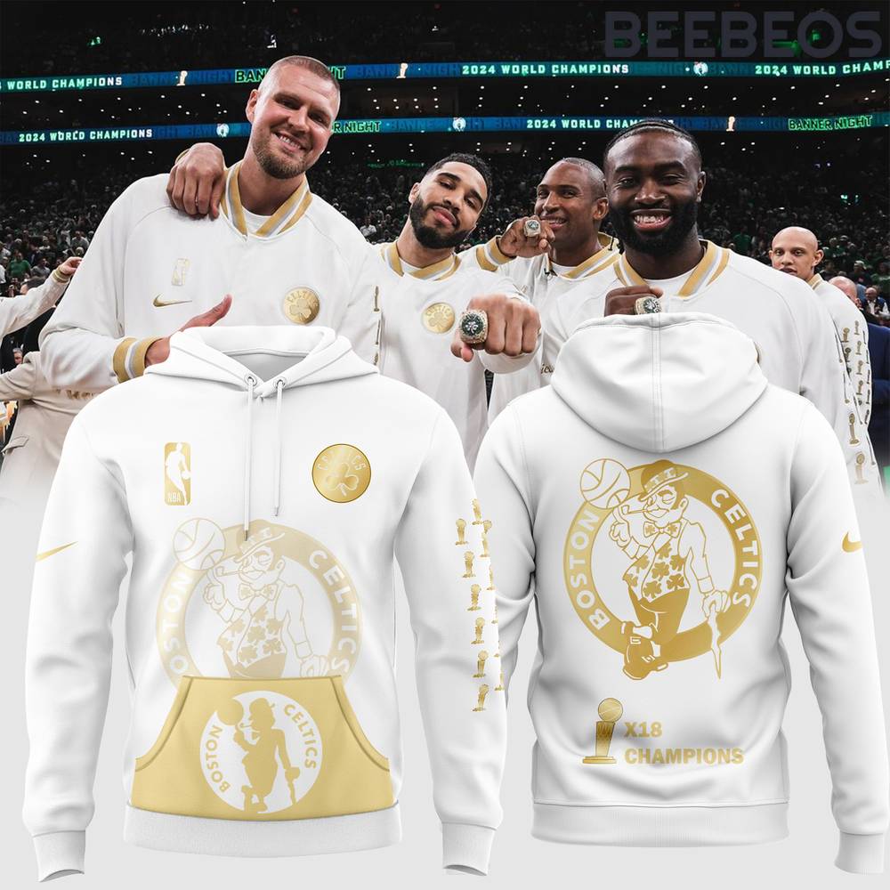 Boston Celtics 18X Champions Ceremony Night White Unisex Hoodie HBB1144